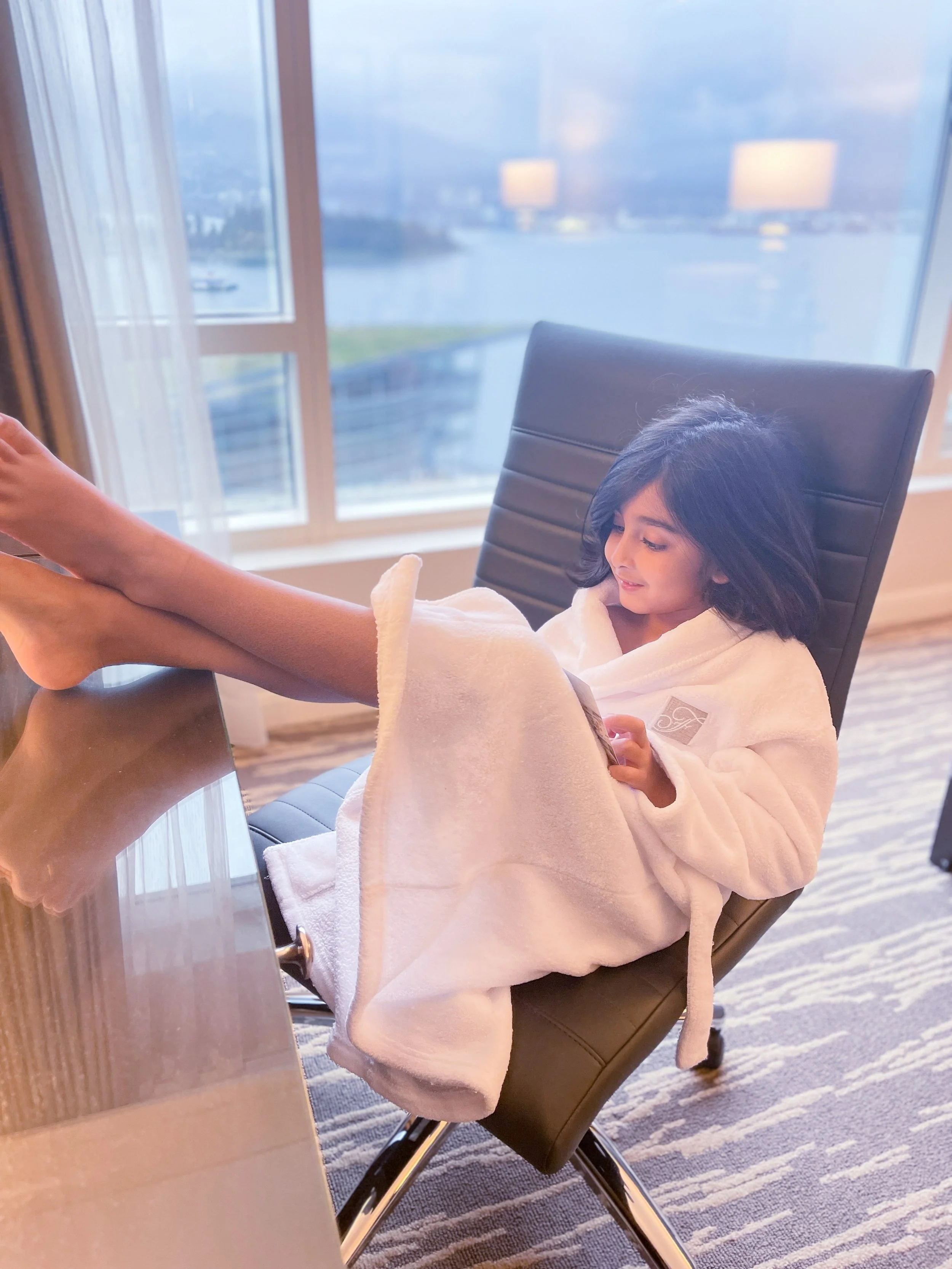 After checking in, we spent some time in the hotel room and the boys immediately grabbed their robes. Fairmont robes are SO comfortable and we loved lounging around in them. Ethan immediately put his own every time we walked into the room. It was so cute. He was made for the robe life, haha!