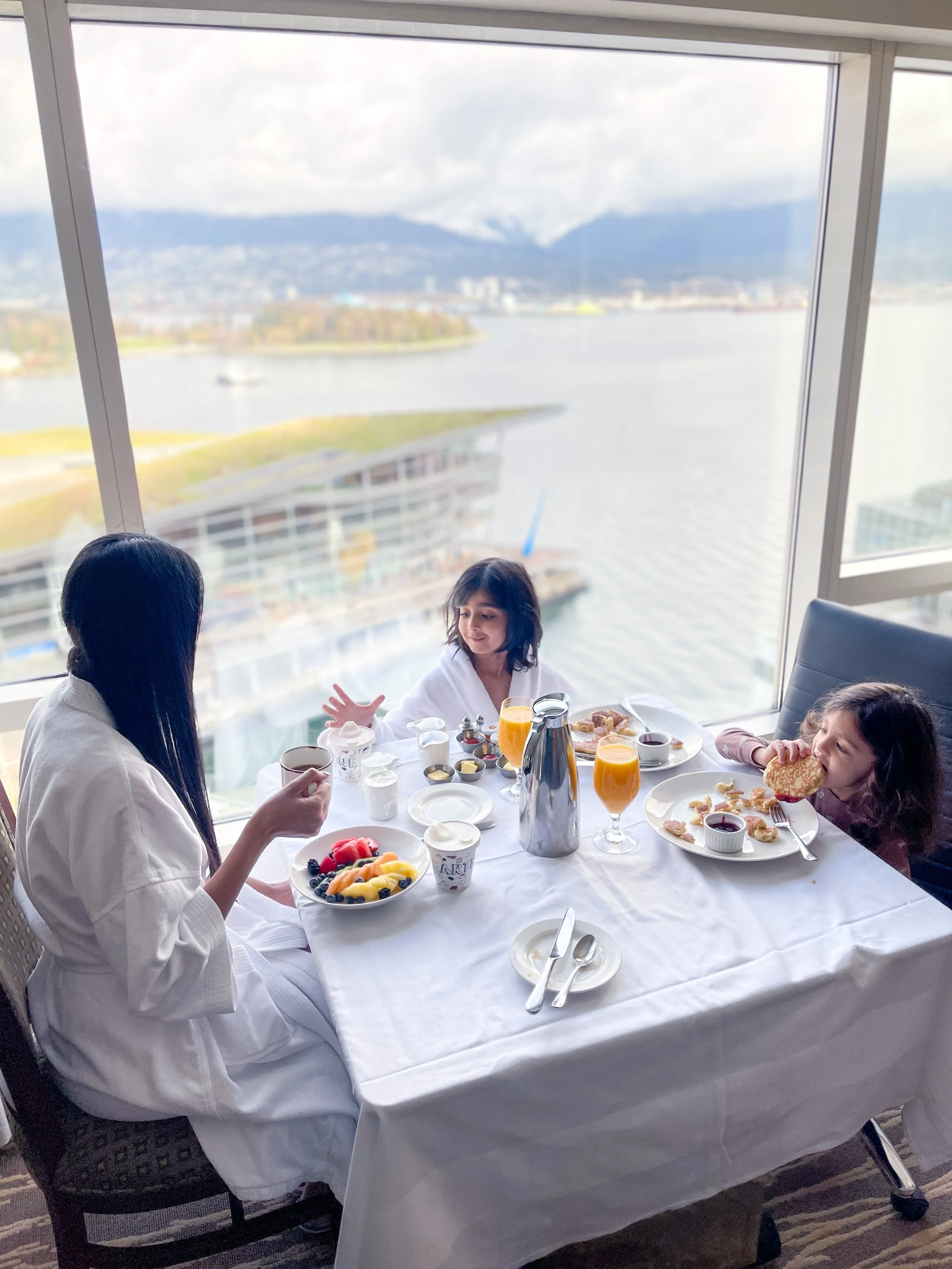 Both Gavin and I loved our meals as well. I am more of a sweet person so really liked the french toast and Gavin wanted a full on big breakfast and ate every single bite. One thing I love about the Fairmont chain is that their room service is always on point and Fairmont Waterfront was no exception. We all wanted to eat together and they brought us two extra chairs which was so nice. The service from beginning to end was more than amazing.