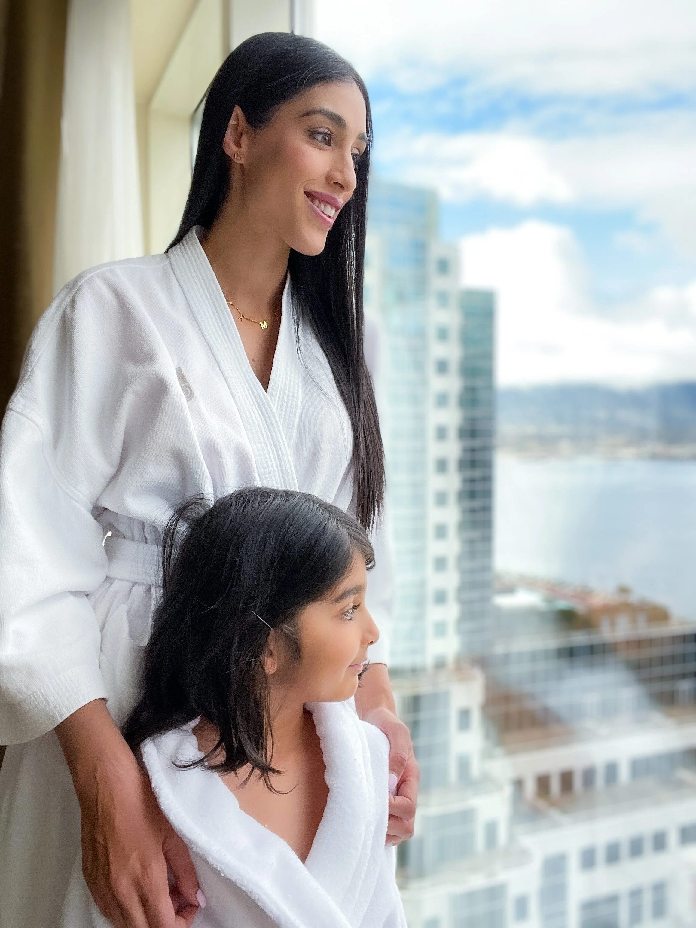 We quickly got ready and met my Mom, Brother and his gf for a nice Saturday night dinner! We didn’t stay out long as we could tell the littles were tired and wanted to come back to the room. They actually wanted to come back and sit by the window after their bedtime showers and hang out. I always get reminded by them that it’s okay to slow down, relax and not do much so we followed their lead. Being able to just sit in a beautiful room with gorgeous views felt so nice!